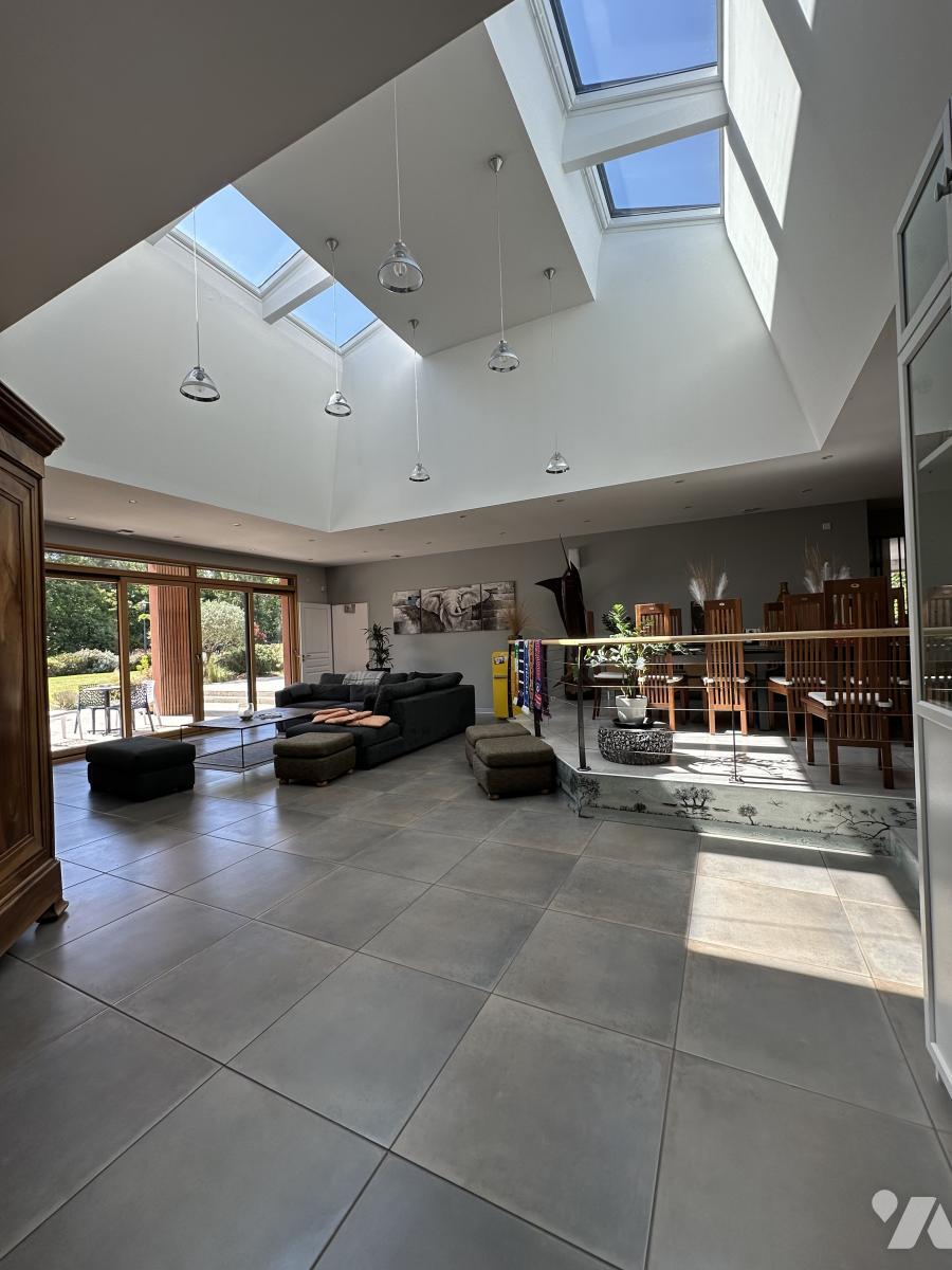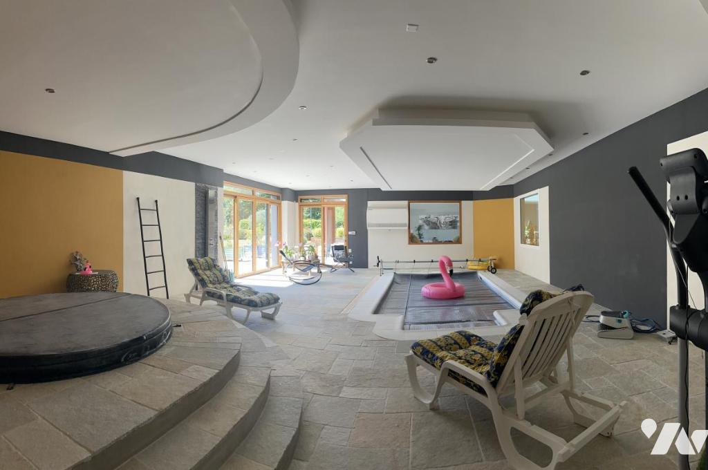 Profitez d'une piscine intérieur avec nage à contre courant, d'une grande terrasse, d'un espace jeux de boules, un garage pour trois voitures, chauffage géothermie.
