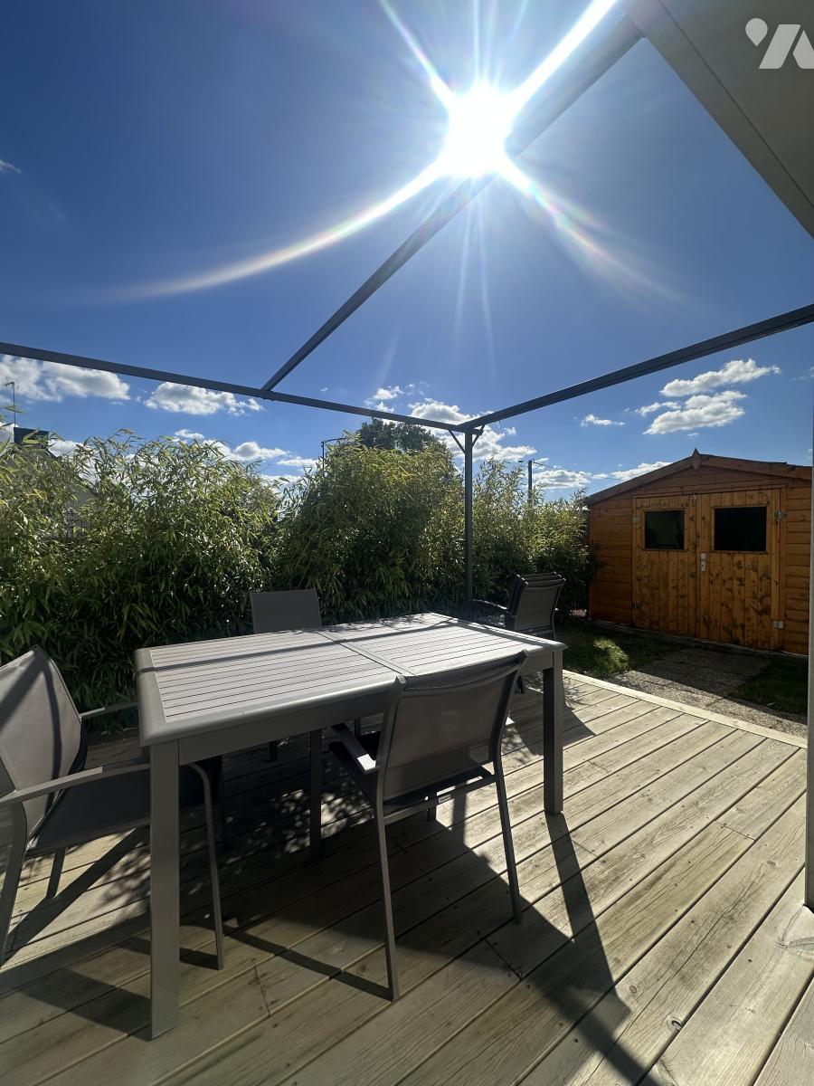 Maison de plain pied de 99 m²,édifiée sur un terrain de 342 m², elle comprend: une pièce de vie lumineuse ouverte sur la cuisine aménagée équipée, arrière cuisine, WC.