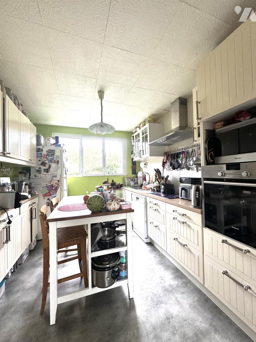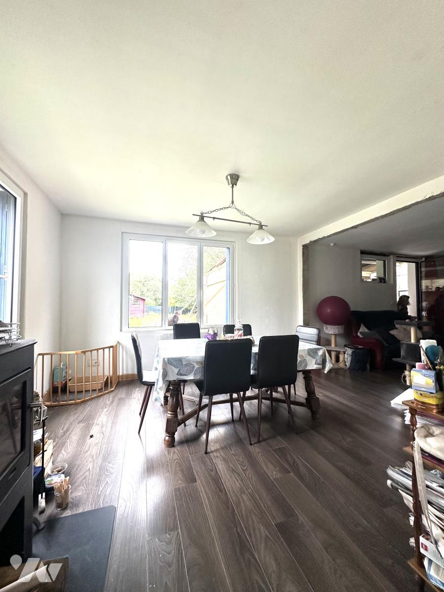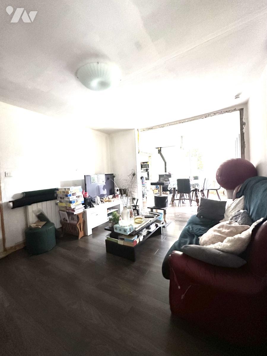 Edifiée sur un terrain de 964 m² maison de ..... comprenant, entrée, séjour salon avec un poêle, cuisine aménagée équipée, lingerie.